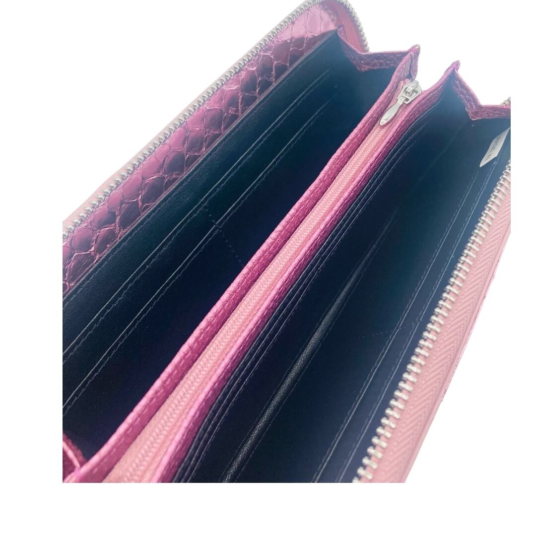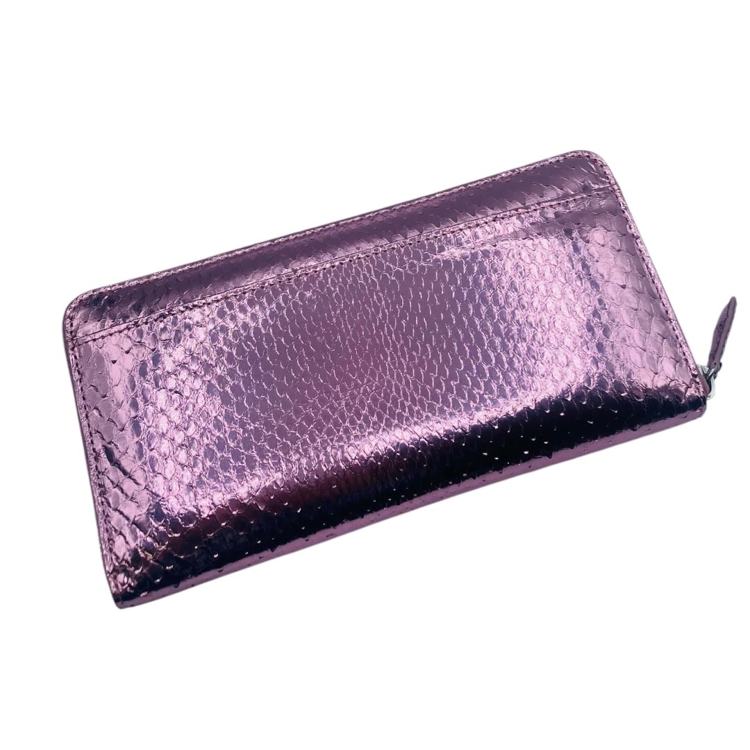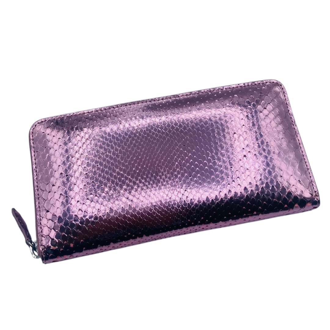 パイソンラウンド長財布 メタルピンク 金運 蛇革 レディース財布