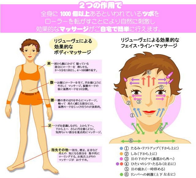 リジューヴェの人気の秘密は、ローラーから発する100種類の音波 「複合音波」と身体の深部まで浸透する「温熱作用」。美しさと健康への欲求に応える全身マッサージャー「リジューヴェ」 医療機器としての優れた特徴は、世界10か国で実証されています